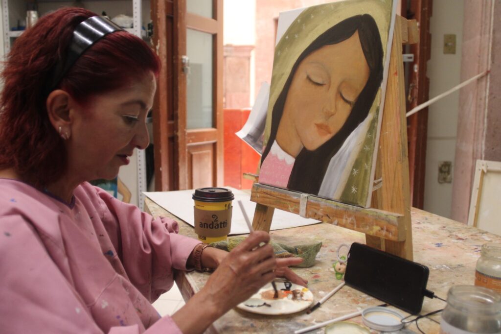 Zacatecas,(29-09-2025).- No sabían agarrar un pincel. “Yo no puedo creer que aprendí a pintar, es muy relajante volar con la imaginación para crear algo, yo nunca había tocado un pincel, mi maestra me quitó el miedo a pintar y gracias a ella saqué la pintora que llevo dentro”, dice Cristy Castillo, quien es admiradora de Frida Kahlo y Diego Rivera y ahora pinta una colección de vírgenes y bocetos.