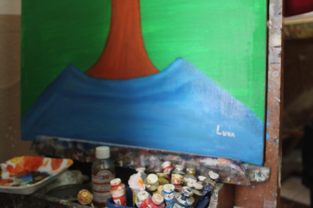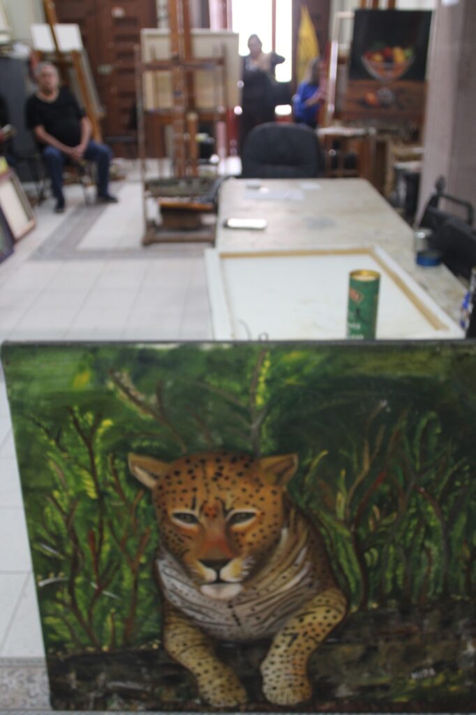 ¡Aaaaahhhh soy muy feliz aquí!, me contesta en un profundo suspiro de alivio cuando le pregunto cómo se siente de estar entre caballetes, en un diálogo permanente con su yo más profundo y sus compañeras y compañeros de viaje creativo.